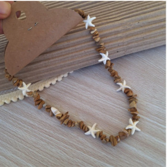 Colar com pedrarias natural feito em fio de silicone, modelo é curto.